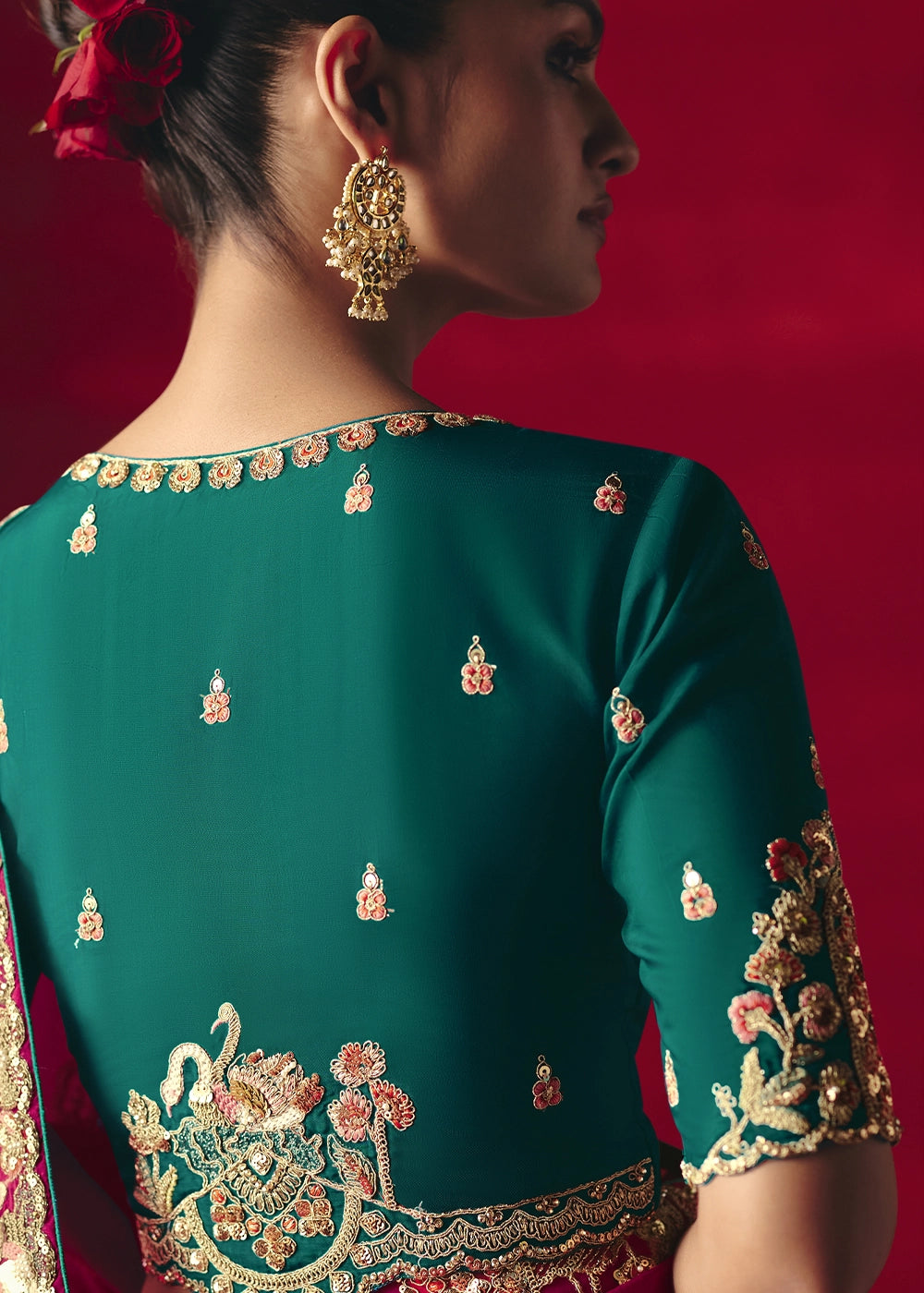 Raspberry Pink Tissue Silk Saree adorned with Sequins and Thread Embroidery