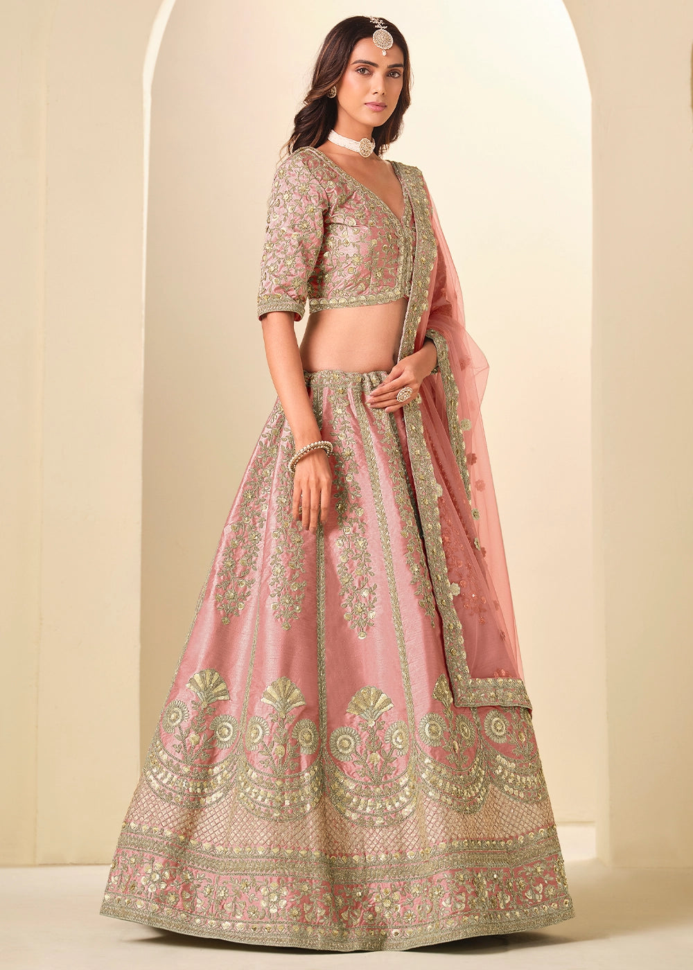 Rose Pink Wedding Wear Silk Lehenga Choli with Embellished Detailing