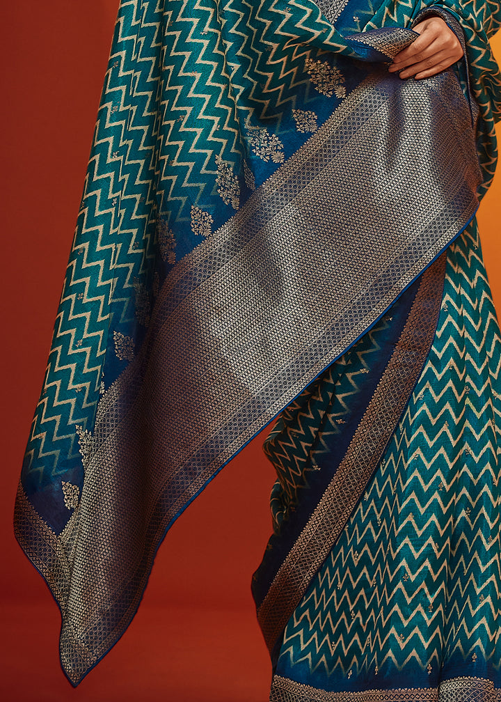 Shades Of Blue Digital Printed Saree in Woven Viscose Silk Fabric
