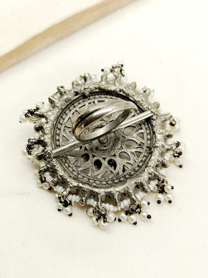 Enhance Your Style With This Traditional Oxidized Finger Ring. Crafted From Silver Plated Brass Metal, The Stunning Piece To Provide An Elegant And Timeless Look With Silver Ball Detaling. A Perfect Addition To Any Jewelry Collection.