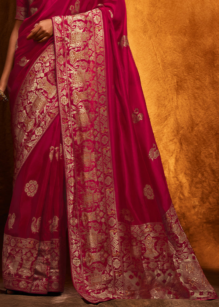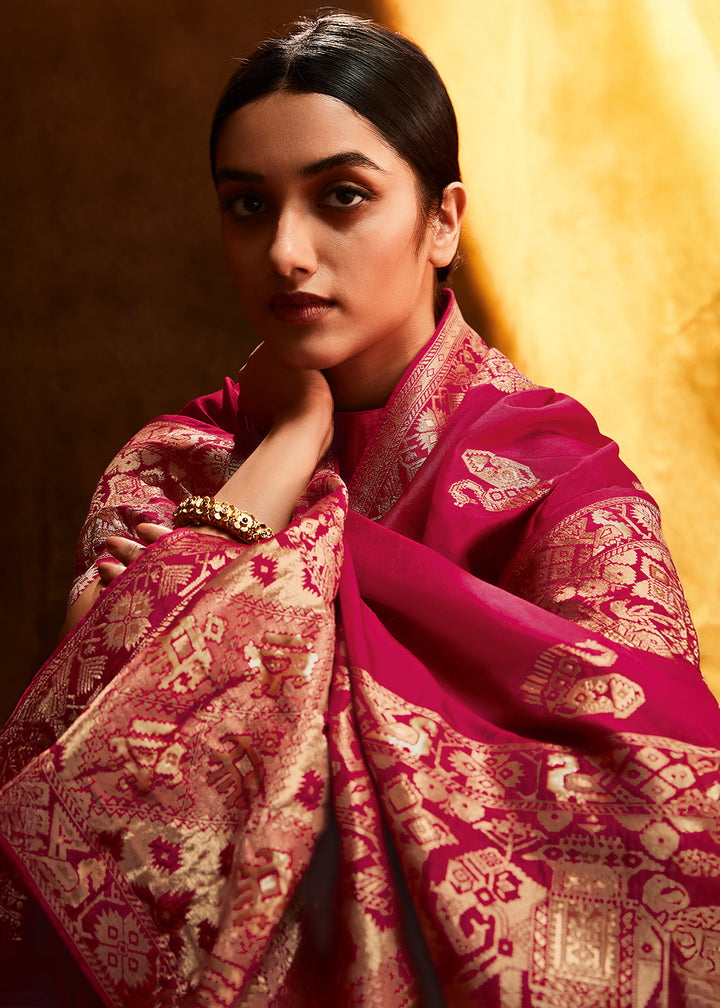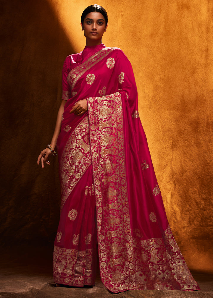 Traditional Hot Pink Woven Viscose Silk Saree with Butti Details