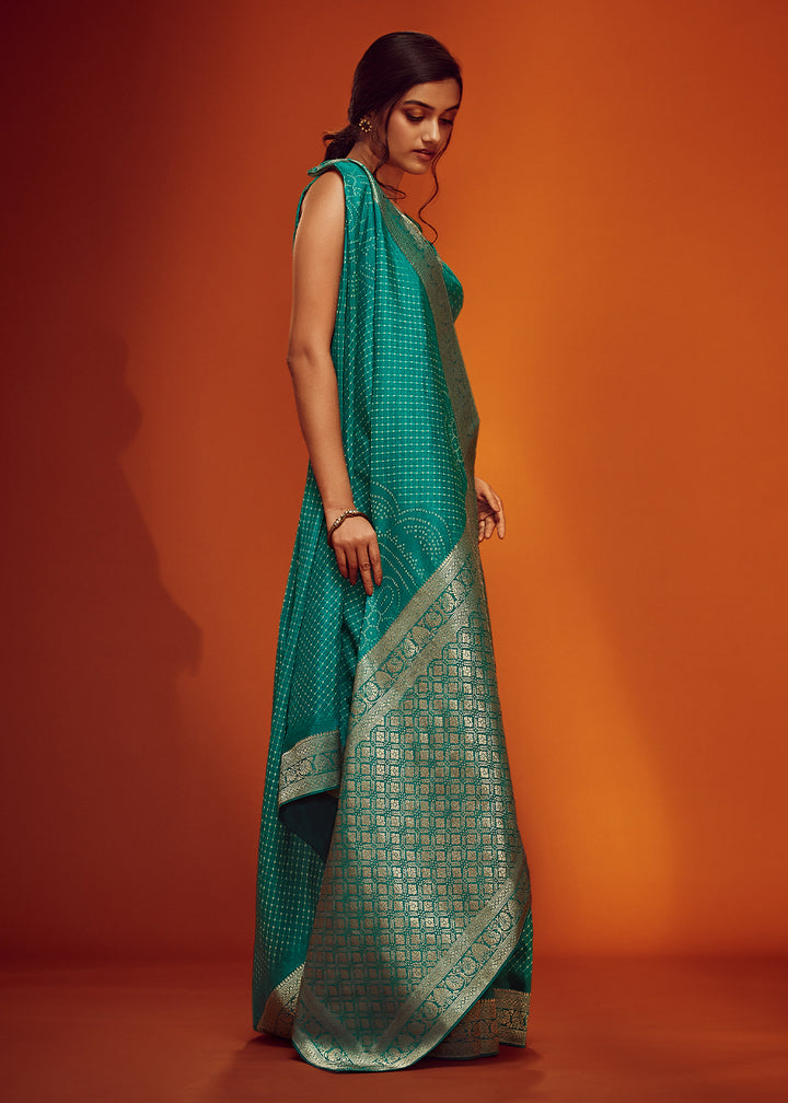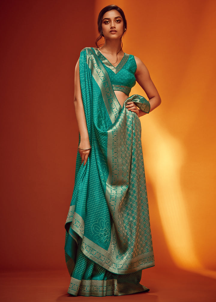 Turquoise Blue Designer Saree in Woven Viscose Silk with Digital Prints